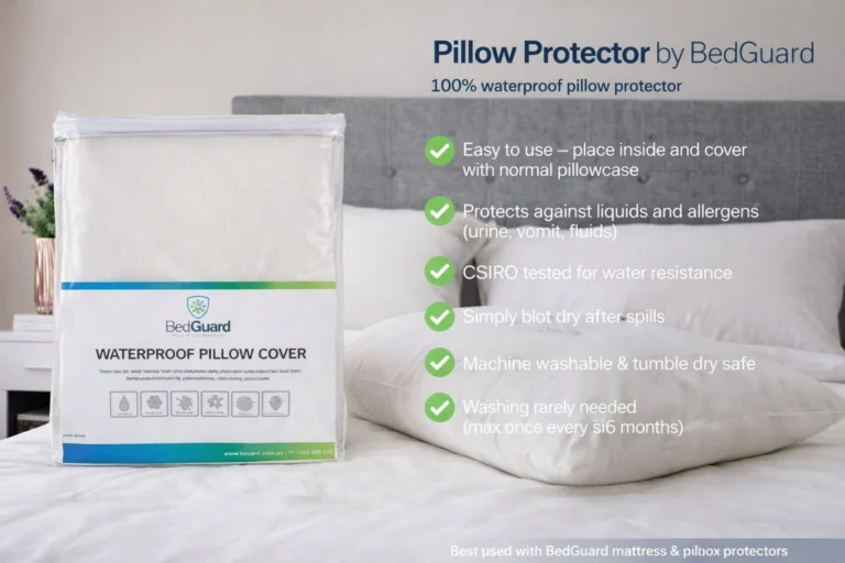 BedGuard pillow protectors will help ensure you have a waterproof pillow case and will stop liquid and solid borne allergens from entering your pillow. Urine, faeces, vomit and other bodily fluids or liquid are no match for BedGuard – BedGuard repels them again and again without maintenance.