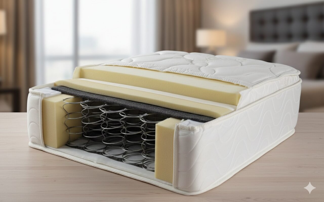 The Guardian Opulence Waterproof Mattress is made up of three major components – the ticking or quilting meaning the top and bottom sleep surface, the foam comfort layer and the inner springs.